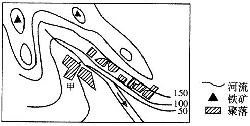 2、如果甲聚落发展成为城市,从影响城市的区位因素考虑主要是