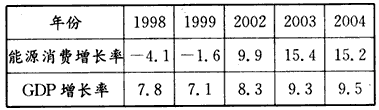5、单选题 能源消费弹性系数是指能源消费的增长率与GDP增长率之比。下表为我国1998~2004年部分年份的相关统计数字,据此回答1—2题。