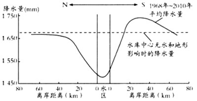 5、单选题 2010年10月26日,经过47天的水量调蓄,三峡水库首次达到175米正常蓄水位。下图是三峡水库对库区降水的影响示意图,读图回答1~2题。