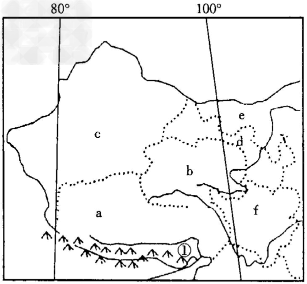 4、单选题 下图是我国西部地区几个省区略图,读图回答1~2题。