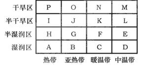3、单选题 下图为部分温度带和四类干湿区的关系图,读图完成下列各题。