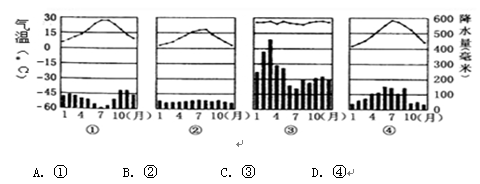 小题1:①为地中海气候,②为温带海洋性气候,③为热带雨林气候,④为亚热带季风气候。英国伦敦的气候类型可能是图中的②。