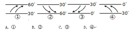 小题2:英国伦敦的温带海洋性气候,常年受盛行西风影响,符合的是①。