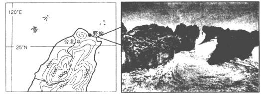 小题2:从图中可以看出,野柳景区在台湾北部沿海,结合右图景观特征,该景观的主要成因应为海浪侵蚀,故选D。