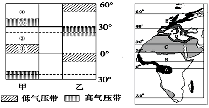 (3)甲图气压带风带位置比乙图 (偏北或偏南),其成因是 。