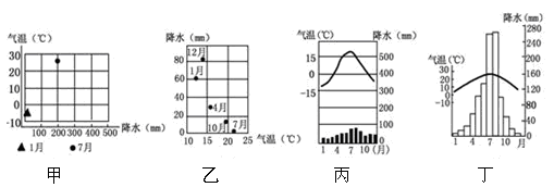 (5)下图中图 能反映右图中D海沿岸气候特征,该地属于 气候类型,其成因是 。