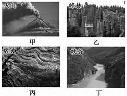 5、单选题 读地理素描图,回答各题。【小题1】因流水侵蚀作用形成的地貌是( )A.甲B.乙C.丙D.丁