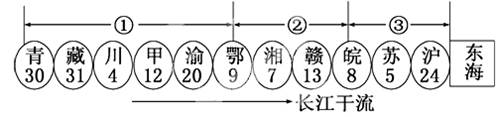 4、单选题 下图是“长江干流流经的省级行政区域示意图”。据此完成下列小题。