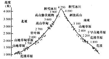 (1)天山山地自然带植被自下向上的变化是遵循陆地自然带分布的________地带性规律。据图可知天山 南坡积雪冰川高度比北坡____(高、低)。天山南北地区利用天山冰雪融水发展____农业。 (2)为了合理利用草场资源,天山北坡牧民在夏季应将牲畜赶往________。(填字母) A.高山草甸 B.山地草原 C.荒漠平原 D.山地草甸草原 (3)下列牲畜中,新疆天山地区放牧的是________。(填字母) A.三河牛 B.伊犁马 C.滩羊 D.阿拉善骆驼