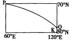 ①这天日出时间Q地比K地晚 ②过Q点的PQ线与赤道交点所在经线的经度为180° ③任何时候K地的正午太阳高度均大于Q地 ④K地与Q地的日影朝向刚好相反 A.①② B.①③ C.②③ D.②④ |