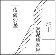 ![]() A.甲位置 B.乙位置 C.丙位置 D.丁位置 参考答案: 本题解析:本题考查潮汐现象和读图分析能力。 本题难度:简单 3、单选题  对海洋表层海水盐度大小没有明显影响的是(? )  参考答案:D 本题解析:海水盐度的大小与降水量和蒸发量的对比关系、河流汇入、洋流等相关,跟人工养殖无关。 本题难度:简单 4、综合题  读图,随着城市建设的发展,有人开始从沙垄挖沙,试分析浅海沙垄破坏后,对海岸有什么不利影响。  参考答案:浅海沙垄破坏后,海浪、海潮对海岸的冲击加剧,加上淤泥质海岸抗冲击能力差,因此会导致海岸线后退。 本题解析:本题是一道综合性较强的题目,考查海水运动等动力因素对海岸地形的影响。海水是通过冲击力塑造海洋地貌的,浅海沙垄作为一个阻滞物体,必然减小波浪对海岸的冲击力。反之,如果破坏沙垄,势必使波浪对海岸的冲击力增大,从而导致淤泥质海岸后退,良田被毁,城市受到威胁。 本题难度:简单 5、综合题  下图为我国海域赤潮发生次数及分布示意图。读图回答下列问题。 参考答案: 本题解析: 本题难度:一般  |