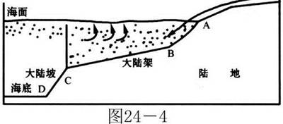 4、综合题  图24-4是大陆架剖面示意图,读图回答下列问题: