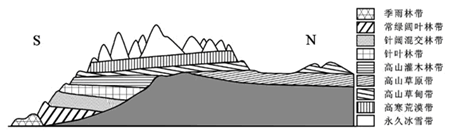 5、单选题 图是我国某山地南、北坡垂直自然带谱示意图。读图回答9题。