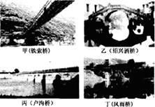 1、单选题 下图中,四幅照片所示景观为我国不同地区传统桥梁的典型代表。读图回答: