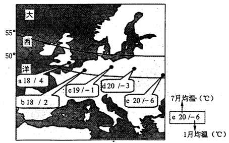 1.城市a~e2.影响城市a~e气温差异的主要因素是
