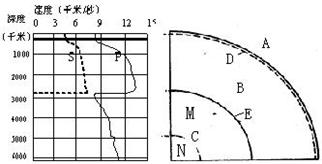 3、综合题 读“地震波速度与地球内部构造图”,回答下列问题:(10分)