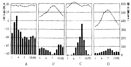 A.海陆分布、纬度位置 B.太阳辐射,地形 C.洋流,地形 D.大气环流,下垫面 |