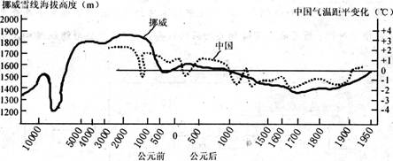 A.人口数量增长是导致环境污染最重要的原因 B.人口压力对环境污染的影响在不同社会技术背景下是一样的 C.经济增长速度的快慢,影响着人类活动的环境后果 D.人口数量增长对环境恶化没有直接影响 2、单选题 下图是10000年来挪威雪线高度和近5000年来中国气温距平变化图,据此回答下列问题。 3、单选题 央视网报道:英国德文郡的莫德伯里镇已经引领欧洲各城市之先,发起了全面禁止使用塑料袋的活动。购物时,顾客可以从店里拿到可降解的淀粉袋,可回收的纸袋或者可重复使用的棉麻袋。根据材料回答以下问题。 |