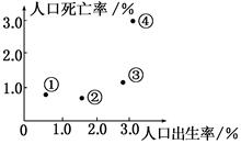 小题3:我国目前的人口处在由“高—低—高”向“低—低—低”的过渡阶段,人口自然增长率较低,但数值为正数,故②符合。