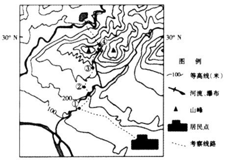 3、单选题 某校研究性学习小组到野外考察。下图为考察区域地形图,虚线所示为考察线路。读图回答1~2题。