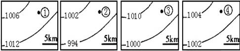 3、单选题 读“某时刻世界部分区域海平面等压线分布图”,回答下列各题。