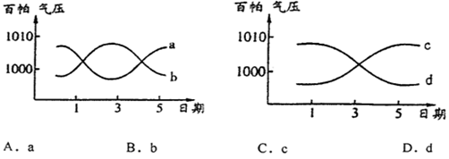5、单选题 图是不同天气系统过境前后的气压变化示意图,图中的四条曲线中,表示冷锋过境前后的气压变化曲线是: