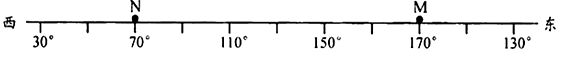 4、单选题 下图为南半球的一段纬线,图中M、N两点为北半球夏至日晨昏线与该纬线的交点。读图回答下列各题。