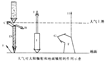 1、单选题 读图,图中A、B、C三个箭头所表示的辐射依次是