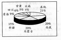 1、单选题 读“七个省级行政单位某种植被面积占全国该种植被面积的比例图”,回答问题