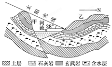 (1)该地的纬度为________。(2分) (2)描述此日全球昼长随纬度的变化状况。(3分) (3)图中河流的流向是________。(2分) (4)下列关于该地的描述正确的是________。(单选? 2分) A.乙地面为阳坡,红壤广布,适合马尾松的生长 B.该地曾发生过岩浆活动 C.该地的自然植被可能为亚热带常绿阔叶林 D.图中河流不可能存在结冰现象