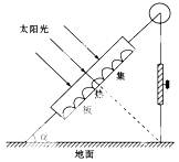 5、单选题 玉溪(24°N)某同学对传统的太阳能热水器进行改造(如右图):将太阳能热水器集热板装在一个大玻璃箱里,并将热水器的支架改造成活动形式。12月22日正午,为使热水器受热最多,需调节活动支架,使热水器集热板与地面的夹角α为