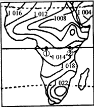 (2)小(1分)?乙地受气旋(或低压控制),为阴雨天气,气温日较差小(1分);甲地受反气旋(或高压)控制,天气晴朗,气温日较差大(1分)