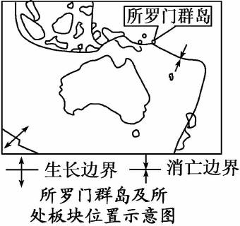 第(1)题,由图可知,所罗门群岛位于印度洋板块与太平洋板块之间。地震在海洋中发生往往会引起海啸。