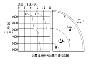 5、综合题 读“地球内部圈层示意图”,回答下列问题。