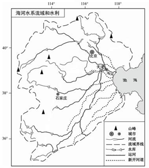 A.气候大陆性较强 B.河流长度短,流域面积小 C.蒸发旺盛,工农业生产和生活耗水量大 D.调水工程减少了河流径流量 |