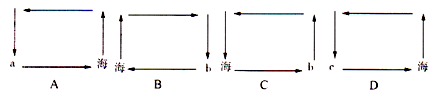 【小题1】下列水循环示意图中,水循环运动在1月份最活跃的为