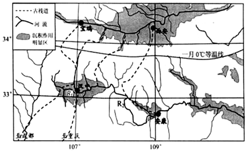 3、综合题 (15分)读我国某区域及一月0 ℃等温线分布示意图,完成下列问题。