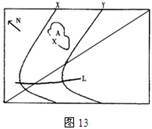 1、单选题 读某地局部示意图(图13),图中X、Y为等高线(等高距为100米),L为河流。据此回答问题。