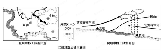 D.昆明与贵阳冬半年均以冷湿天气为主