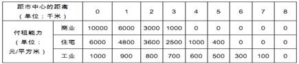 2、单选题 下表是某城市商业、住宅、工业活动支付地租能力调查统计表。对该表数据分析正确的是