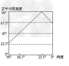 (3)用折线在图2中画出该日北半球各地正午太阳高度的分布规律。