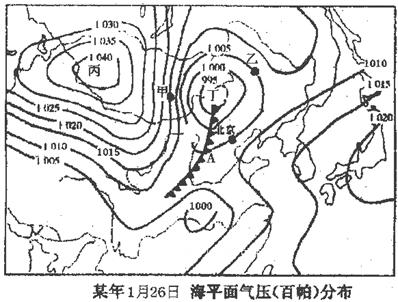 【小题2】台风是气旋,北半球气流方向是逆时针辐合。在气旋的不同方向上,风向不同。台风“莫拉克”登陆台湾东海岸时,我国北方沿海位于台风中心的北部,多刮东北风或偏北风,A对。台风中心南部吹西南风,东部吹东南风,西部吹西北风,B、C、D错。