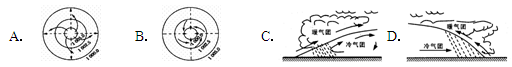 小题2:关于戊地所在半球及天气系统的正确组合为