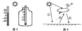 【小题1】图3为模拟温室效应的小实验,两支同样的温度计静置在阳光下,十分钟后,透明玻璃瓶内温度计的读数可能是 ( )