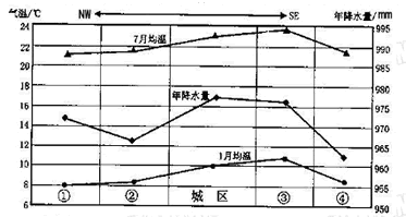 小题3:本题考查影响城市地租的主要因素。城市地租主要受距离市中心的远近和交通通达度影响。距离适中越近,交通通达度越高,地租水平越高。③处可能为交通发达。所以本题选择C选项。