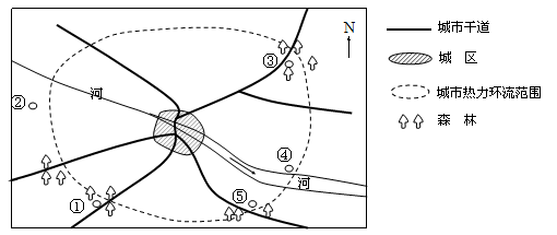 (1)若该城市需布局一大型火力发电厂,其最佳区位是图中①②③④⑤中的那一地?请说明理由。(3分) (2)该城市所在地形区的主要该农业地域类型特点的是(?)(多选,全对得1分) A.市场需求对农产品产量影响很大 B.水利工程设施量大 C.大规模农场、机械化程度高 D.地广人稀、土地轮作