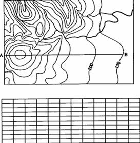 (1)在地形图下的网格中,画出沿AB线的地形剖面图。