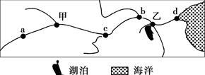 小题2:图示d位于河流入海口,河运联系海运,交通便利,且经济腹地广阔,故大城市的形成。
