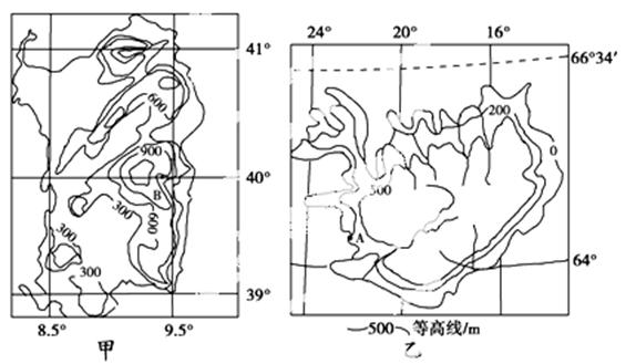 2、综合题 甲、乙两图分别表示两个不同地区的地形图。读图完成下列问题。(12分)