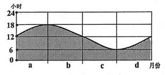 小题2:根据图示d时段北半球的昼长变短,所以南半球的昼长变成。所以本题选择B选项。